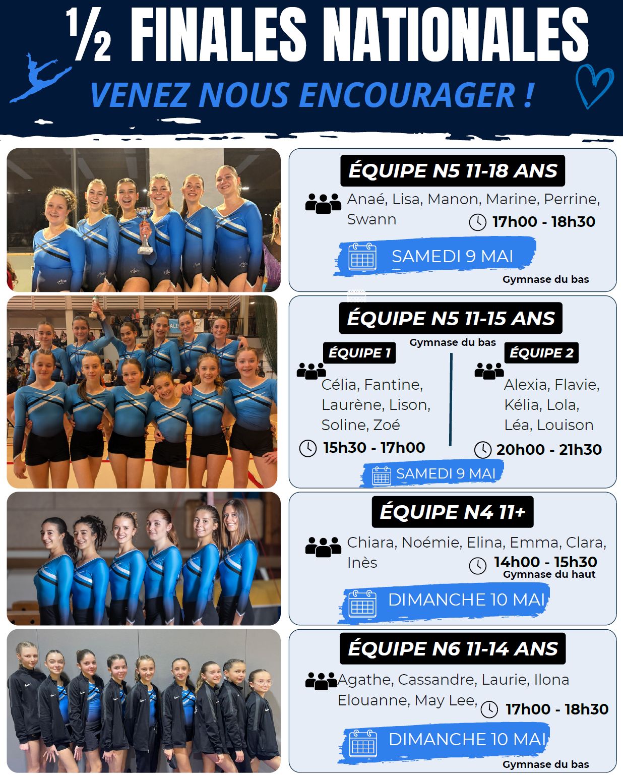 Le club est fier du parcours de chacune des gyms et de leurs familles qui les encouragent vivement à chaque rencontre.